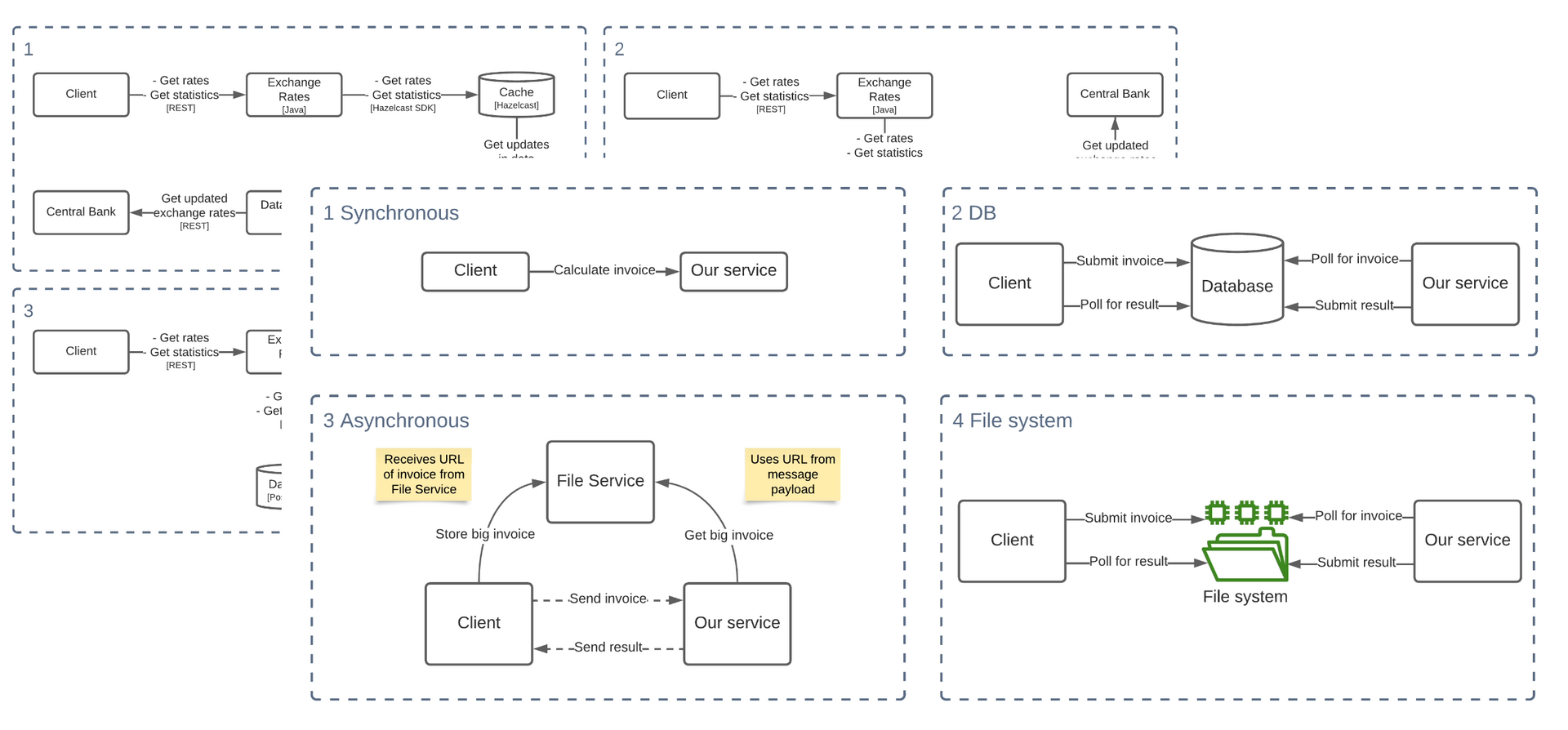A set of questions verifies practical architecture skills and reports statistics.